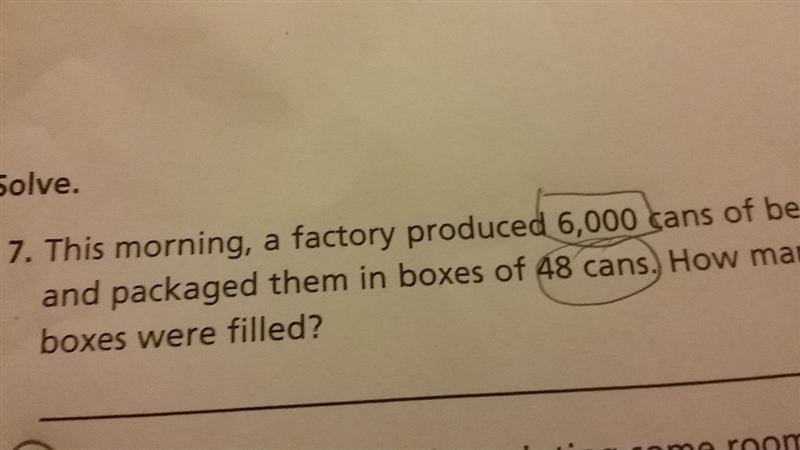 This morning , a factory produced 6,000 cans of beans and pakaged them in boxes of 48 can how many boxes were filled *hint divide