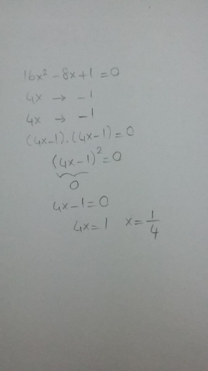 How can you describe the solution set of the equation 16x^2 - 8x + 1 = 0?