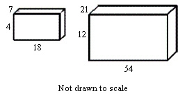 The ratio of corresponding sides is 18:54 = 4:12 = 7:21 = 1:3