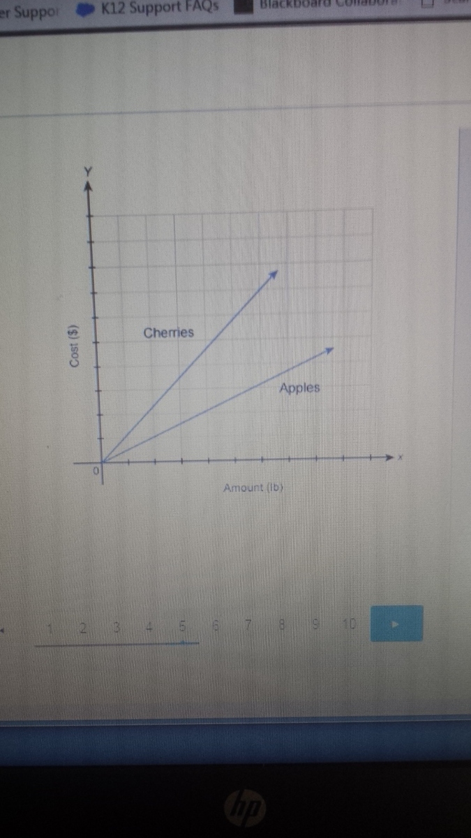 A) The unit cost for cerries is greater because the slope is greater than the slope for apples
