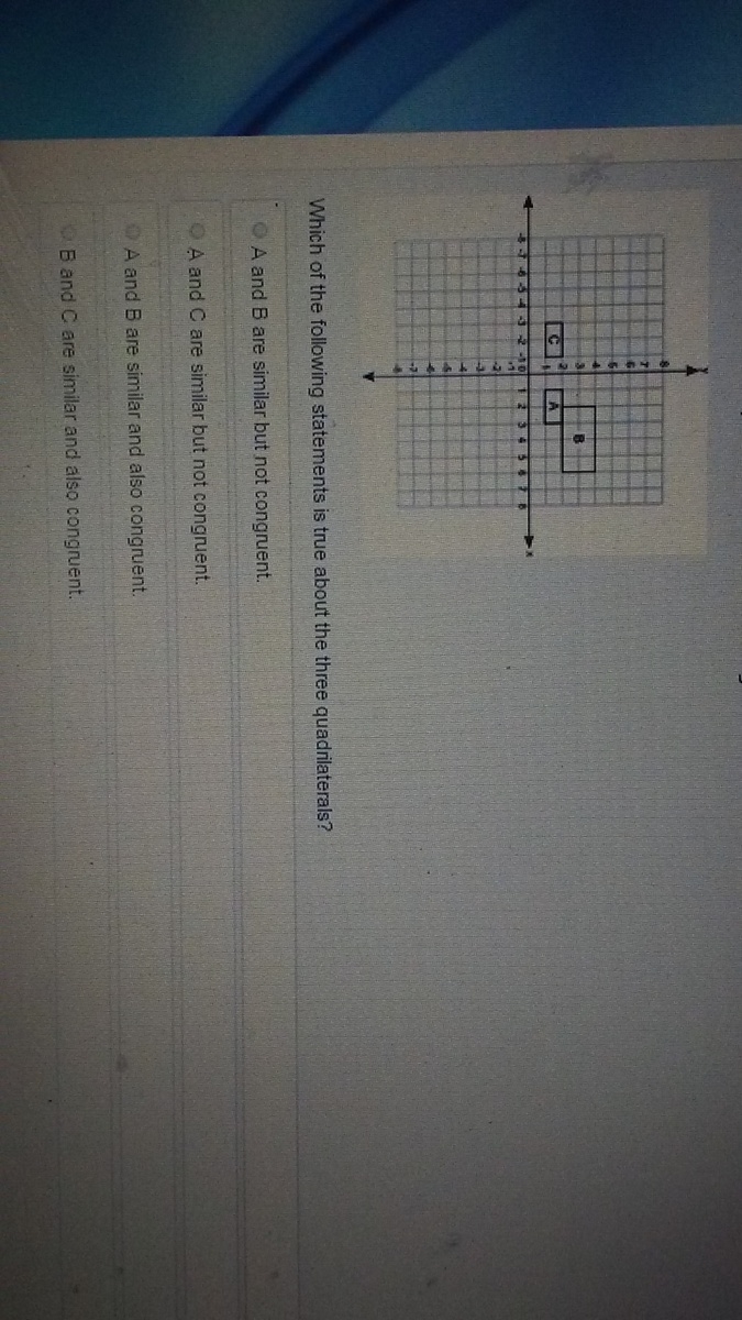 even if their not the same size if you divide 4 from b you get the same thing as A and if you multiply by 4 you get the same thing but their not congruent.