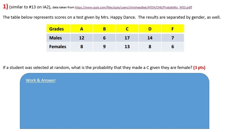 13/30 chance as you only need to look at the "C" section