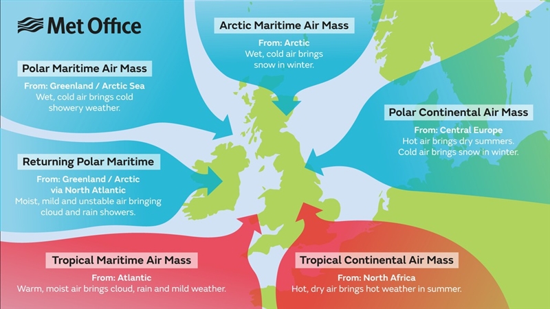 The 4 types of air masses that affect the continental US include: