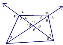 Use the Exterior Angle Theorem to determine which of the following angle measures is NOT less than 13 1.angle 8 2.angle 10 3.angle 2 4. angle 9