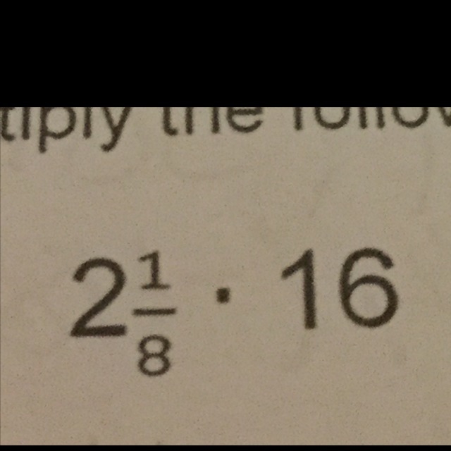 Turn 2 1/8 into an improper fraction. Multiply the denominator by the whole number and then add the numerator. 2 x 8 + 1= 17. Improper fraction is 17/8. So is 17/8 x 16/1. 16 x 17= 272. This is 272/8. Now simplify. Answer is 34