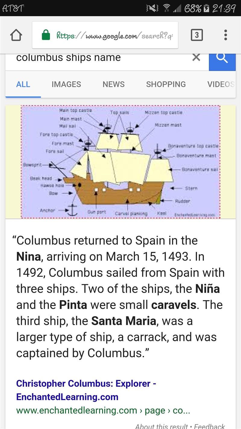 Which of the following was NOT one of the ships in Columbus's voyage? * Santa Maria Nina Tierra Pinta