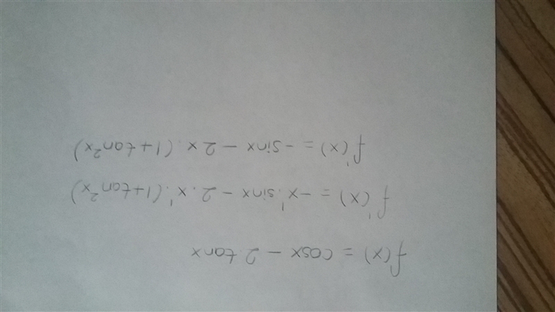 f ` ( x ) = - sin x - 2 * 1 / cos² x =