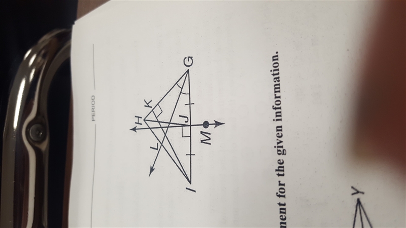 Name an angle bisector a. KI B. GL C. JM D. HJ