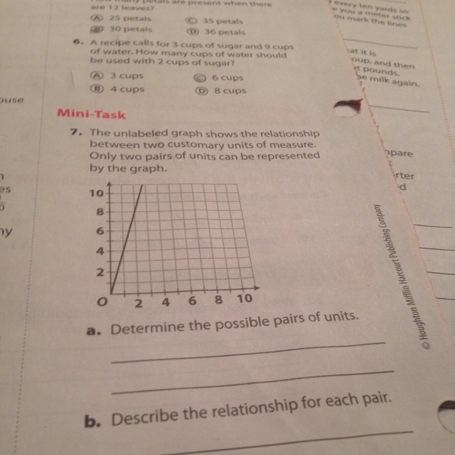 From the given graph it is noticed that the line is passing through the points (1,4) and (2,8). Therefore the possible pairs of units are (1,4) and (2,8).