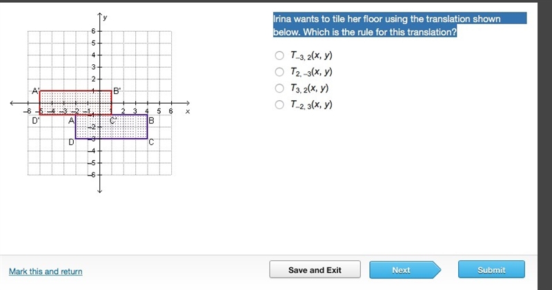 Irina wants to tile her floor using the translation shown below. Which is the rule for this translation? (look at image)