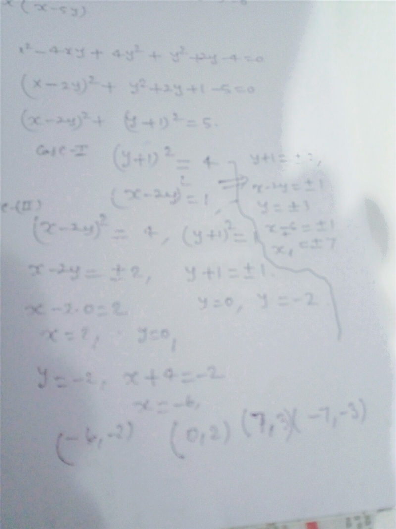 The total number of pairs of integers (x,y) which satisfy the equation x²-4xy+5y²+2y-4=0 is = [?]