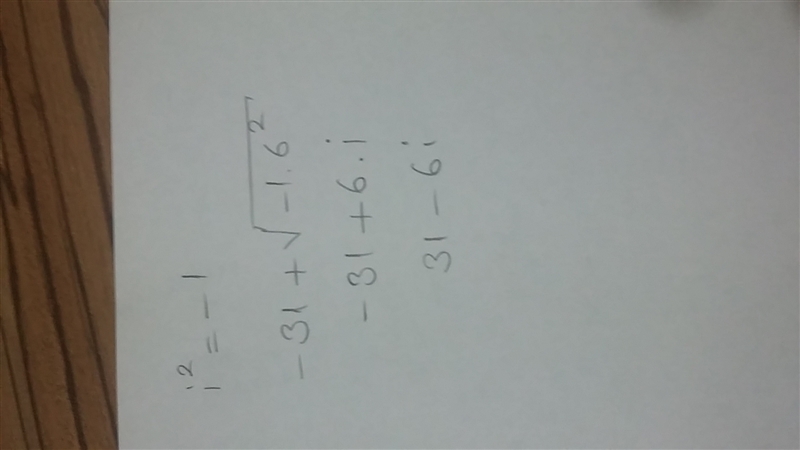 Which of the following is the correct notation for the complex number -31+√-36?