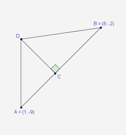 In the diagram, the areas of ΔADC and ΔDCB are in a ratio of 3 : 4. What are the coordinates of point C?