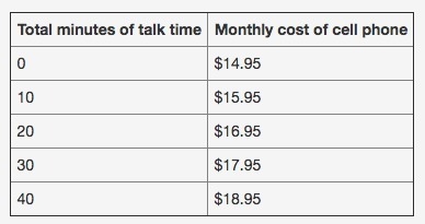 A cell phone plan has a monthly cost that is shown in the table below. What is the correct statement regarding the average rate of change during the 40-minute time of talk?