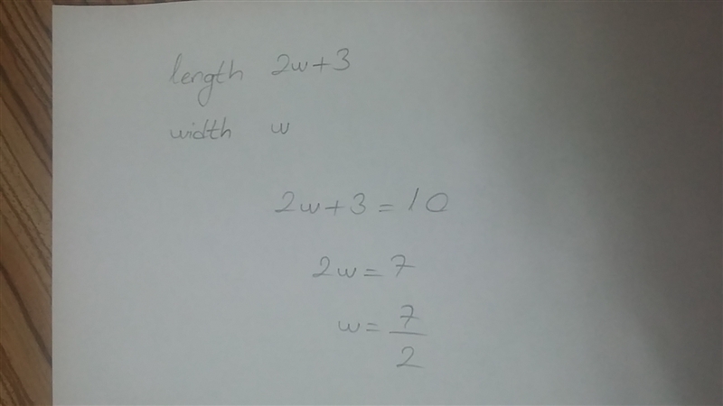 The length of a rectangle is 3 meters more than twice its width. the length of this rectangle is 10 meters. write an equation to solve the perimeter of this rectangle