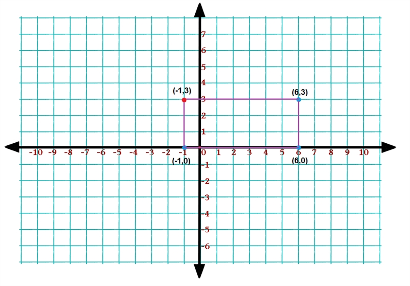 Three vertices of a rectangle are (–1, 0), (6, 0), and (6, 3).