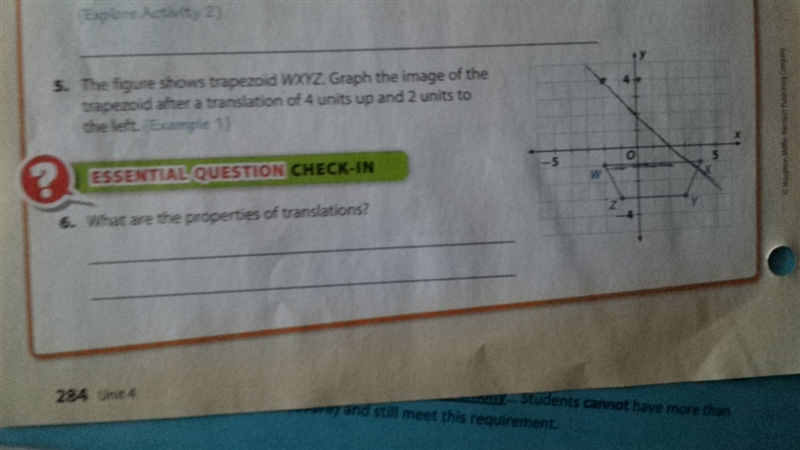 6.A translation moves a object a fixed distance in a given direction. The original object and its translation have the same shape and size, and they face in the same direction. They both are congruent. I hope this helps.