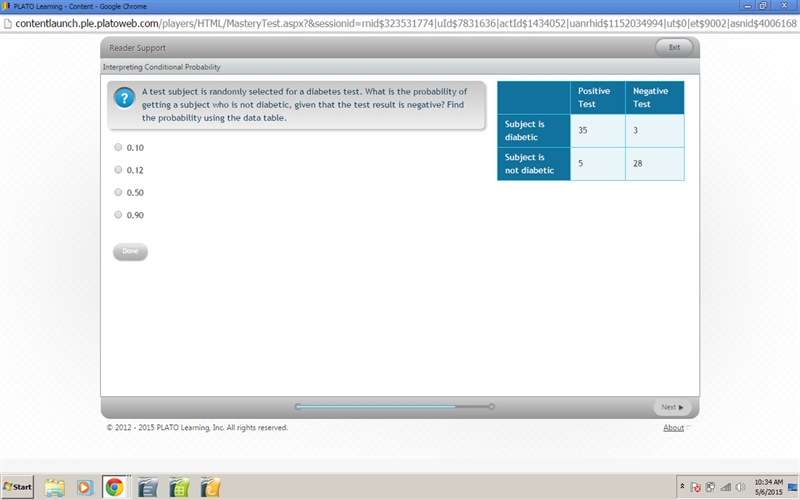 the probability of getting a subject who is not diabetic, given that the test result is negative is 0.90%