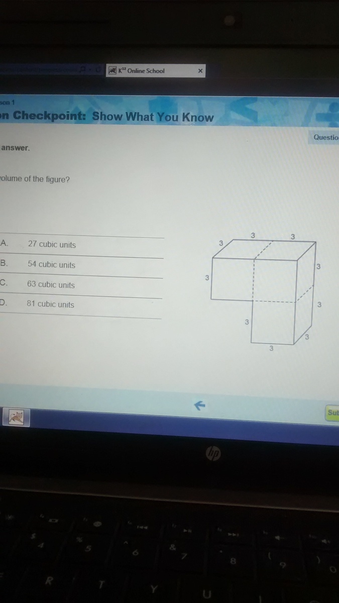 3³ + 3³ + 3³ = 27+27+27 = 81 cm³