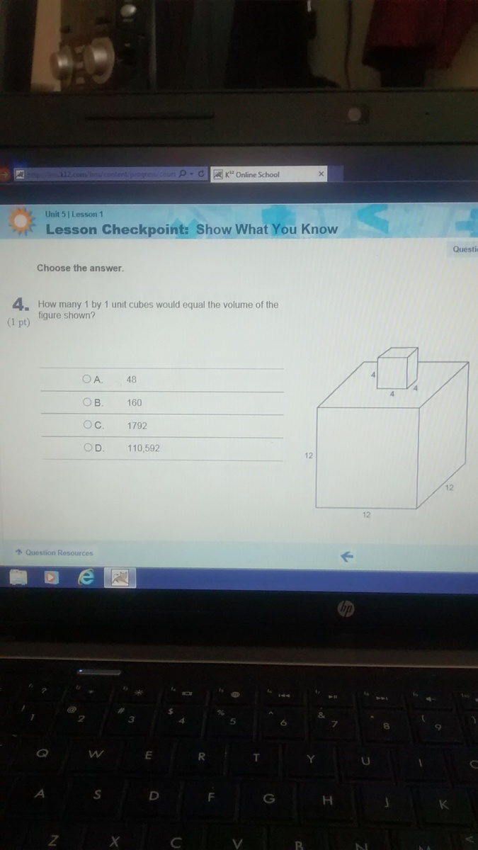 Step-by-step explanation: The book shows you to break the cubes apart and multiply them individually then add them together like this. 4*4*4=64 12*12*12=1728 then you add them and get 1792