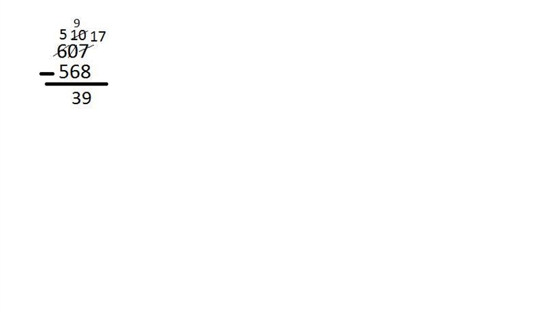 Here, we need to regroup 607 -568 .