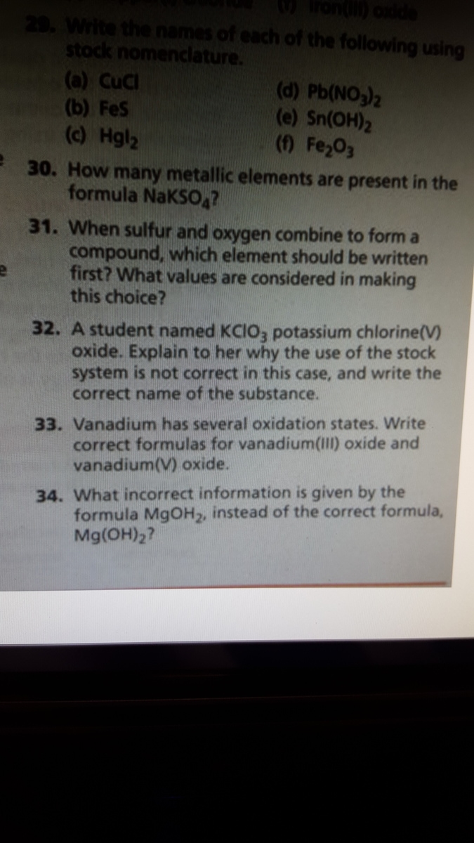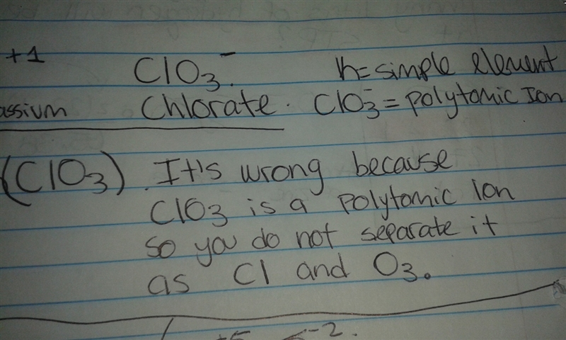 32. It's wrong because ClO3 is a polyatomic ion so you do not separate Cl and O3.