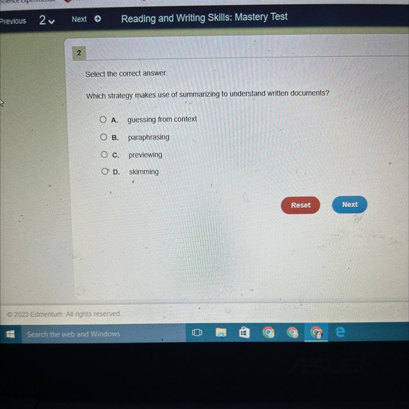 Answer: Paraphrasing
