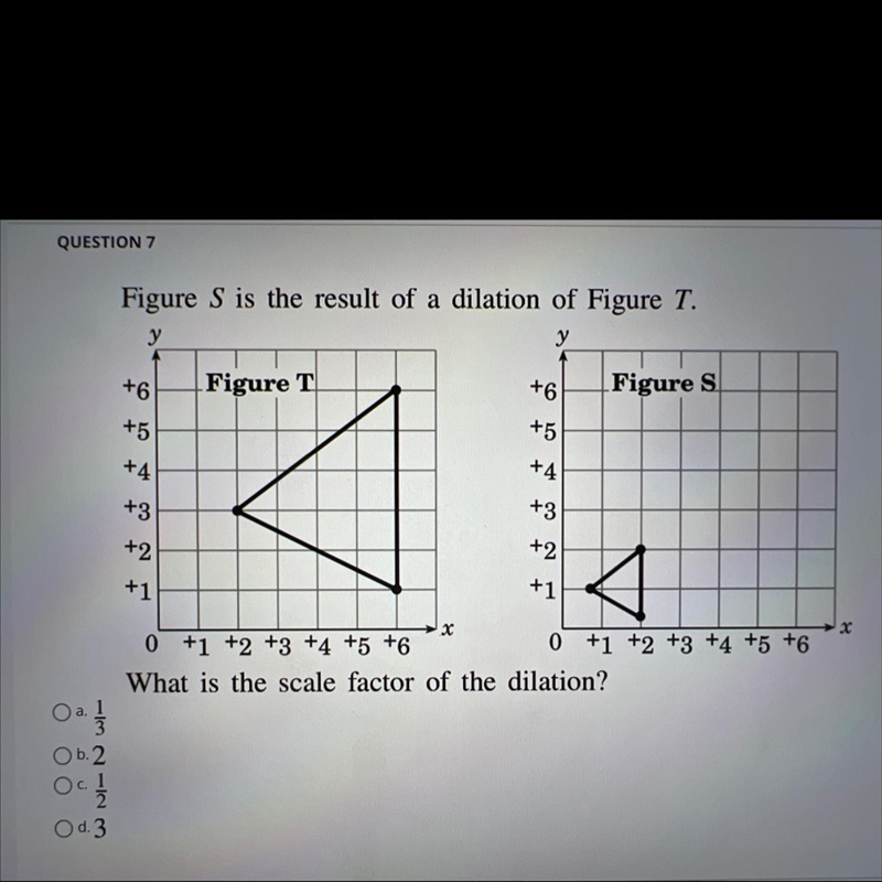 One of the points of Figure T is (6,6). If you then look at Figure S, the point that corresponds with that point is (2,2), which is divided by 3. However, the other two points of the image are not exactly on point, which leads me to believe that it is a fraction scale factor.