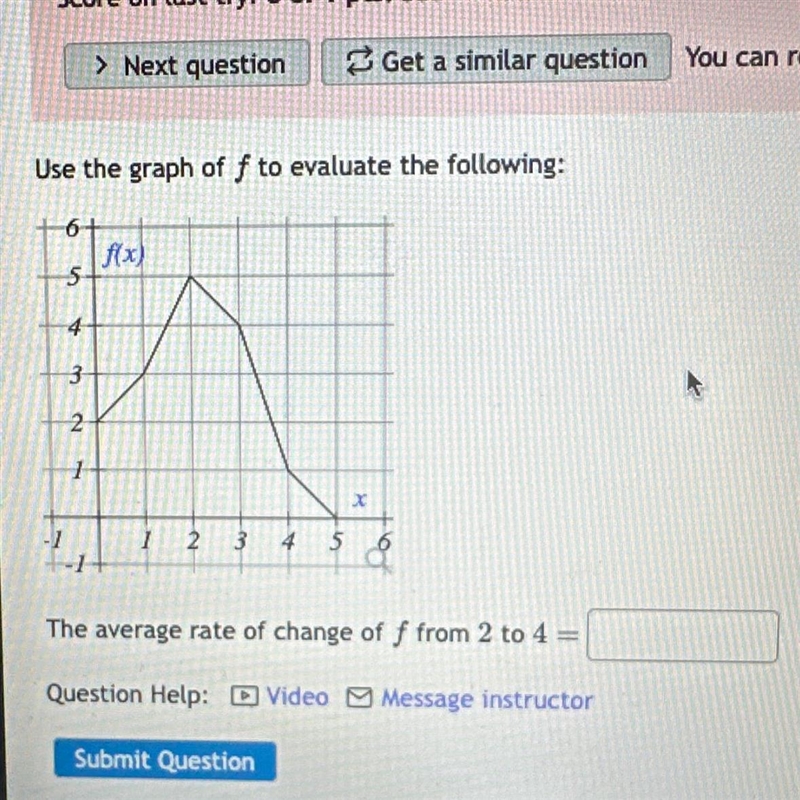Just a quick mental note: since the line slopes down from 2 to 4, our answer will be negative.