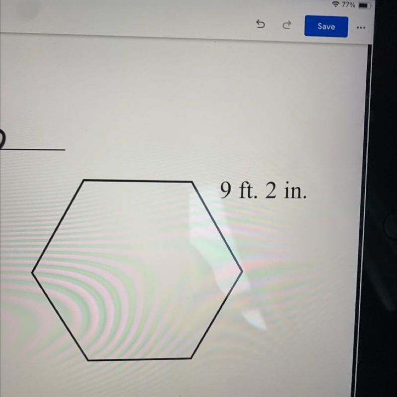 Since the side length of the hexagon in the image is 9 ft. 2 in., we need to convert it to a decimal number before plugging it into the formula. One way to do this is to multiply the feet by 12 and add the inches, then divide by 12 to get the decimal equivalent. For example: