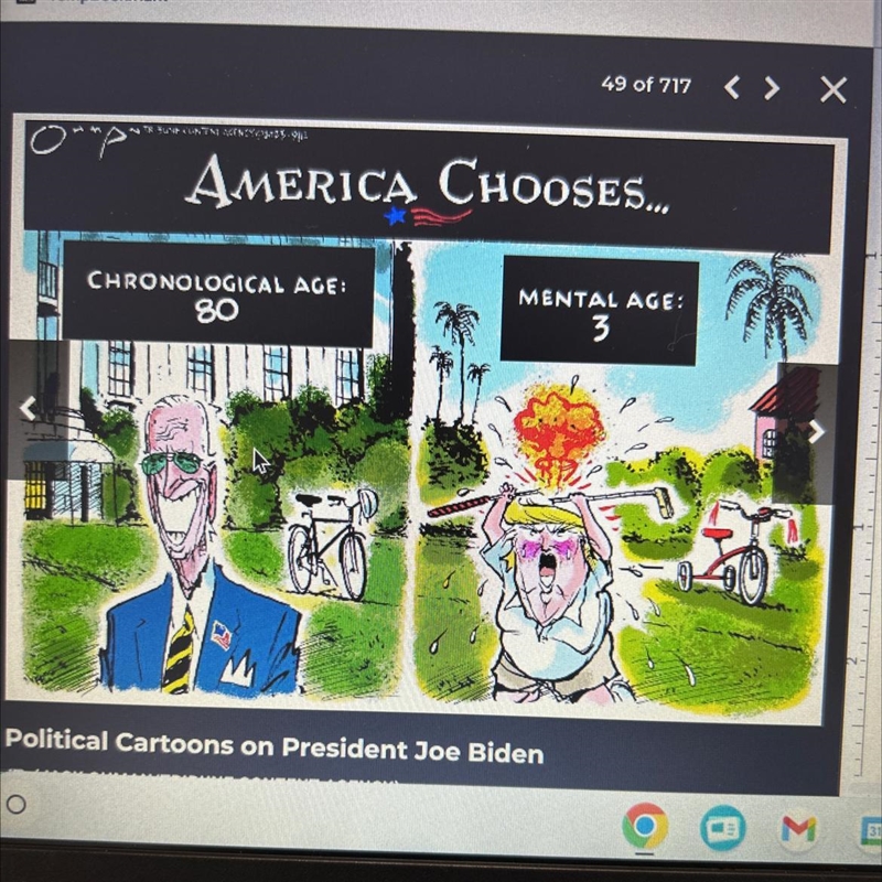 This political cartoon seems to highlight the contrasting perceptions of age and mental acuity between Joe Biden and Donald Trump.