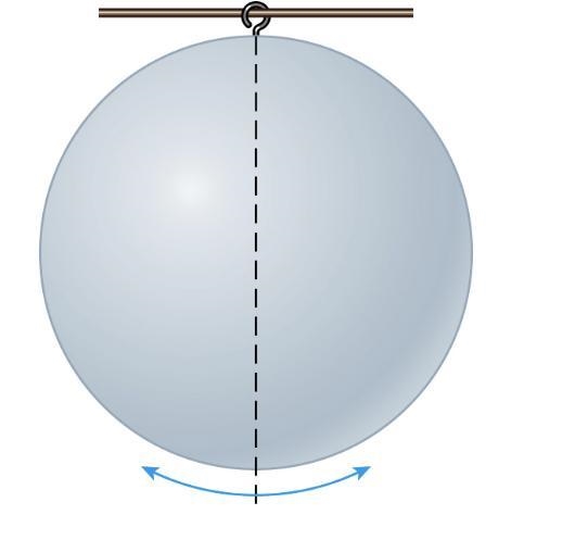 A solid sphere made of acrylic plastic with a density of 1.1 g/m³ has a radius of 6 cm a very very small eyelid is screwed into the surface of the sphere and a horizontal radius passed through the eyelid allowing the sphere to pivot around the fixed axis as shown in the figure if the spheres display slightly from equilibrium on the surface of earth determine the period of its harmonic motion when it is released.