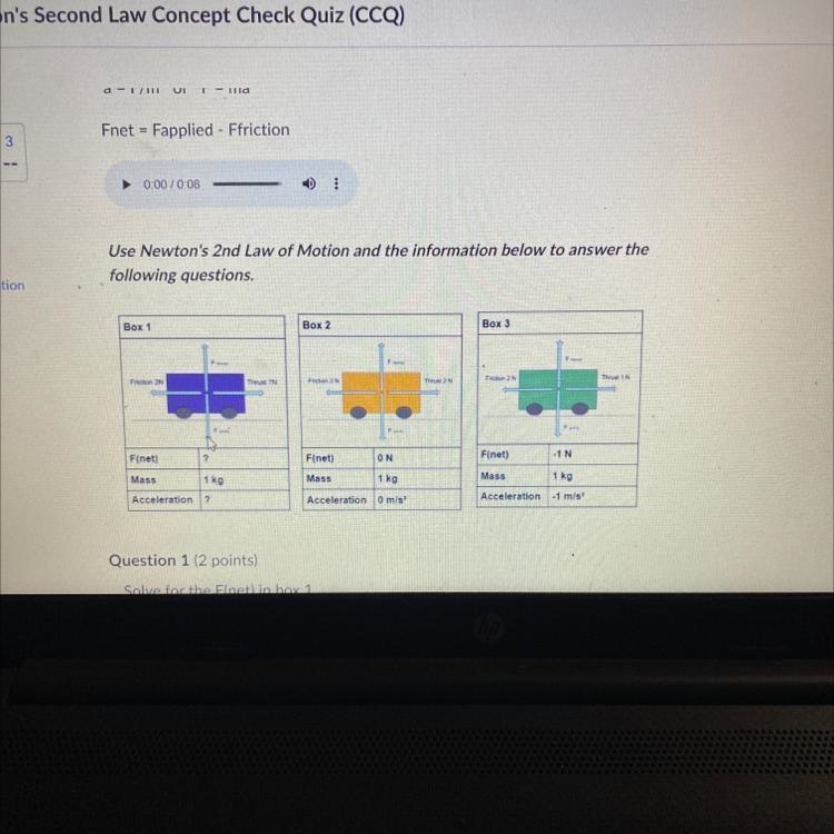 ASAP PLS!!!Solve for the acceleration of the cart in Box 1. ▶0:00/0:07 1 m/s² 0 m-example-1