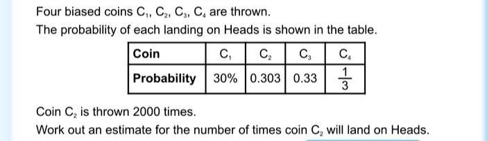 Hence we have that c₂ would land on head for 606 times