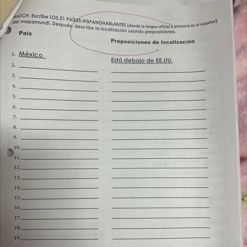 Below is a list of 21 Spanish-speaking countries and their locations using prepositions: