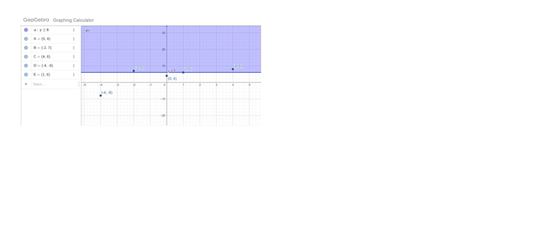 Y>=6 ((0,4),(-2,7),(4,8),(-4,-8),(1,6))