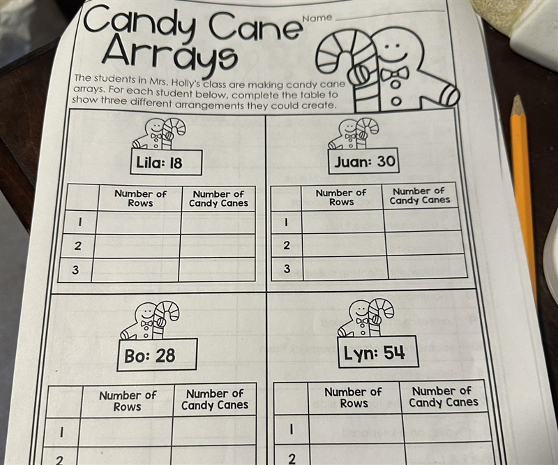 For example, if a student were to create three different arrangements of an array with 12 candy canes, they could arrange them in the following ways: