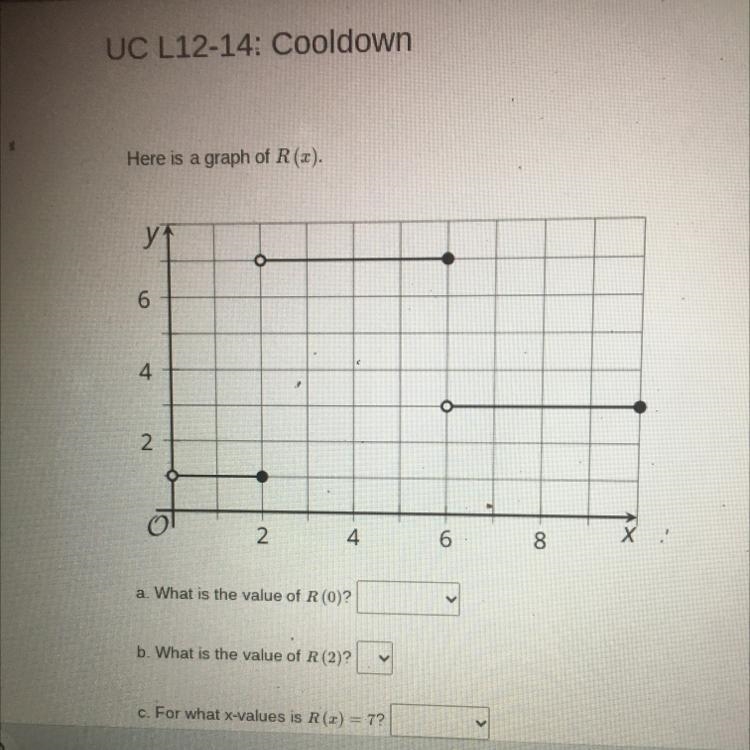 The x-values where R(x) = 7 are 2 < x ≤ 6