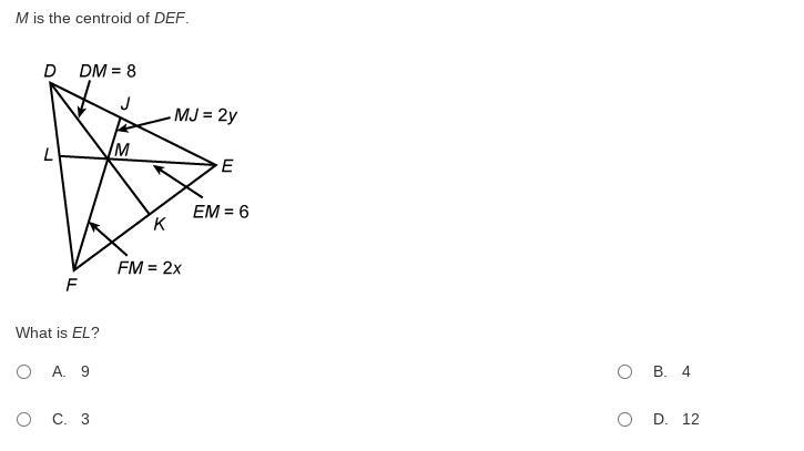 the median is a segment that goes from one of the triangle's vertices to the midpoint of the opposite side.