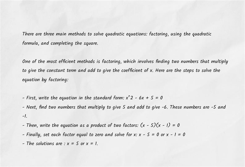 Fine the solution(s) to the education using an efficient method. X^2-6x 5=0
