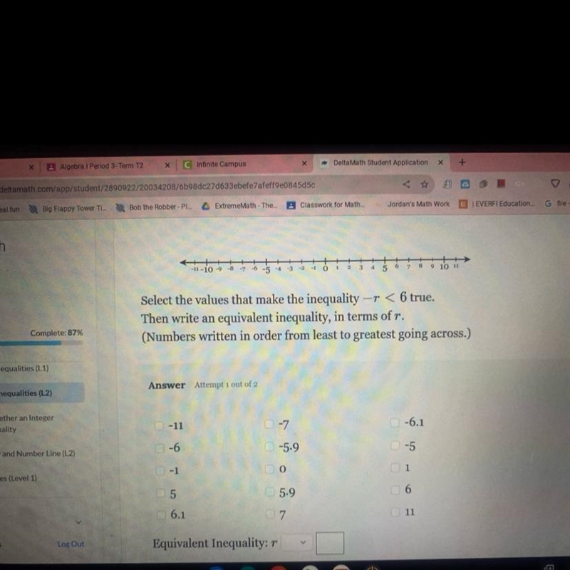 Therefore, any value of r that is greater than -6 will make the inequality true. As you can see, any number to the right of -6 on the number line will make the inequality true.