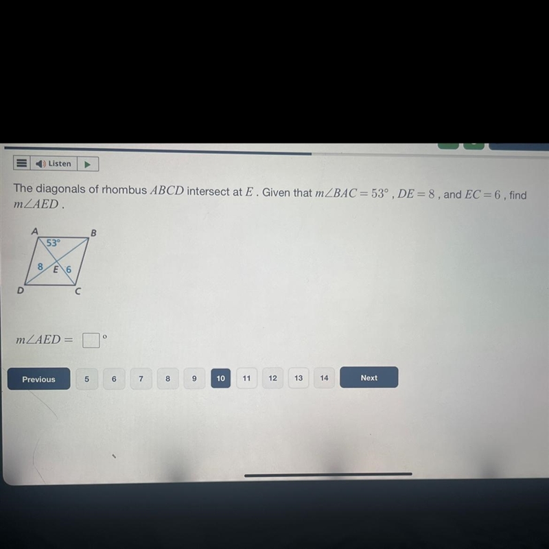 Since we know that m/BAC = 53°, the angle m/DAC is also 53° because they are opposite angles created by the intersection of the diagonals.