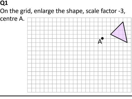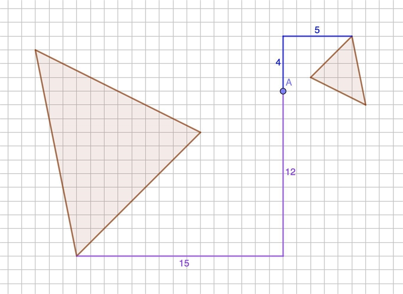 In the attached figure, the chosen point is 4 units up and 5 units right of A. Its image in the dilated figure is 3·4 = 12 units down, and 3·5 = 15 units left of A.