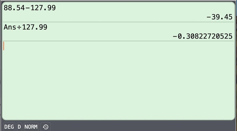 -39.45/127.99 × 100% ≈ -30.823% ≈ -31%