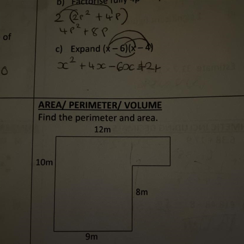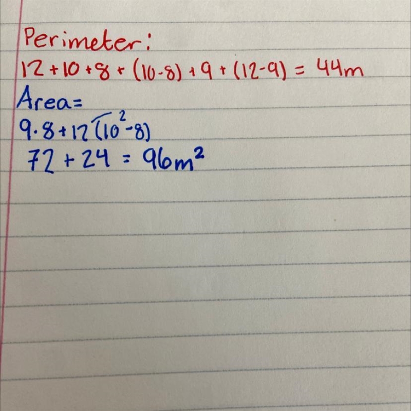 A = 9m * 8m + 12m * (10 - 8)m