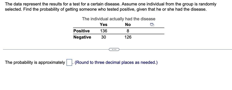 Therefore, the probability of getting someone who tested positive given that he or she had the disease is approximately 0.944.