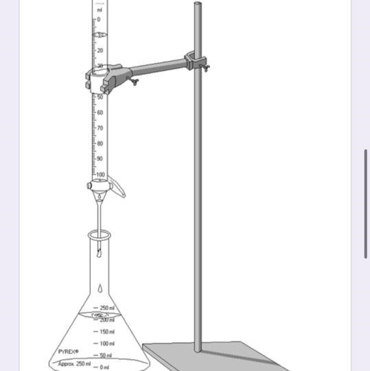 A student sets up a titration with a * 1 point buret filled with 0.5 M NaOH. In the flask below they place the phenolphthalein indicator and 6.2 mL of the unknown acid. The solution in the beaker turns pink after exactly 24.8 mL of NaOH have been added. Find the exact concentration of the unknown acid.