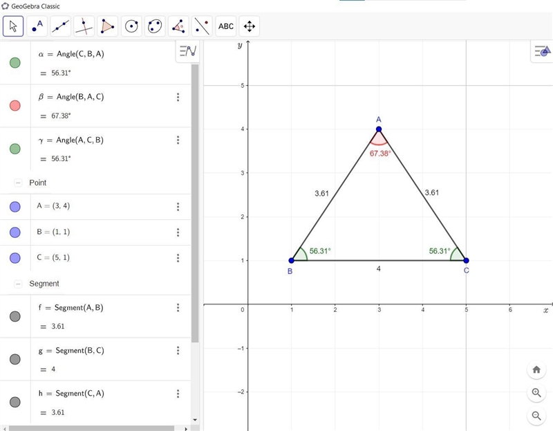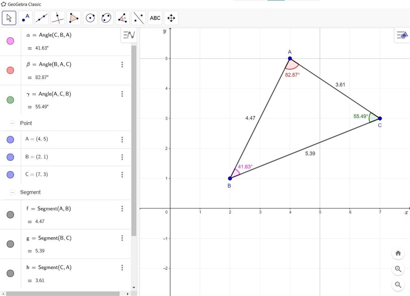 Alternatively, type Angle(Polygon(A, B, C)) into the input field to create all interior angles.