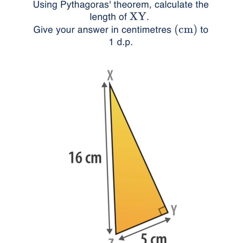 In this case, the hypotenuse (c) is 16 cm, and one of the legs (a) is 5 cm. We can plug in the values and solve for the missing value.