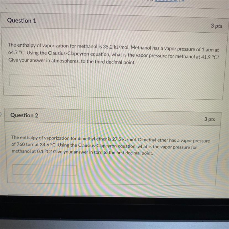 To use the Clausius-Clapeyron equation, we need to know two sets of conditions for the substance in question. Let's start with question 1: